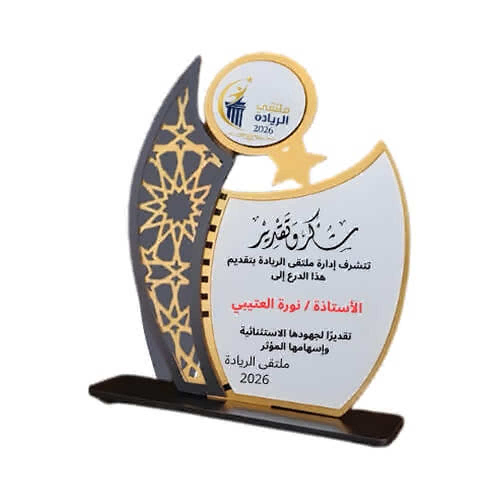 نعم، مناسب كدرع تكريم للجهات والمدارس والشركات واللجان والفعاليات.