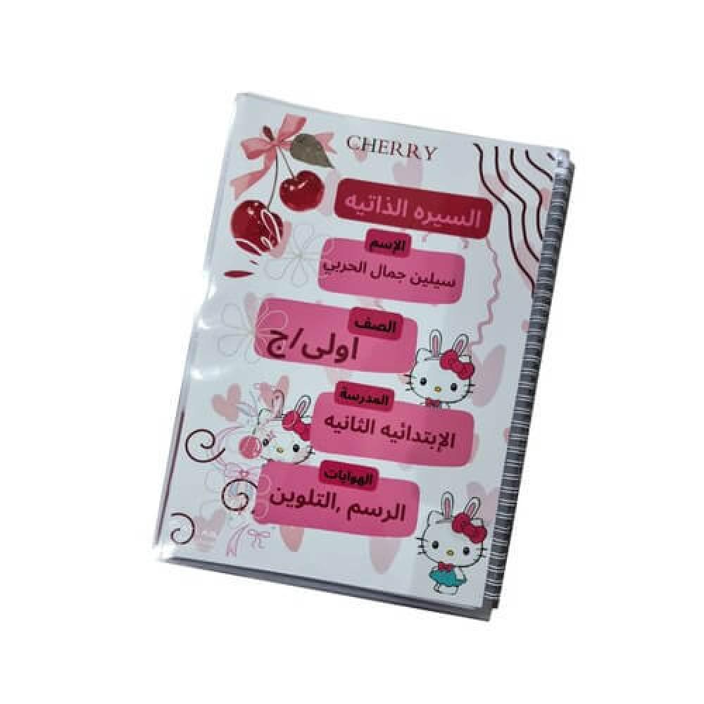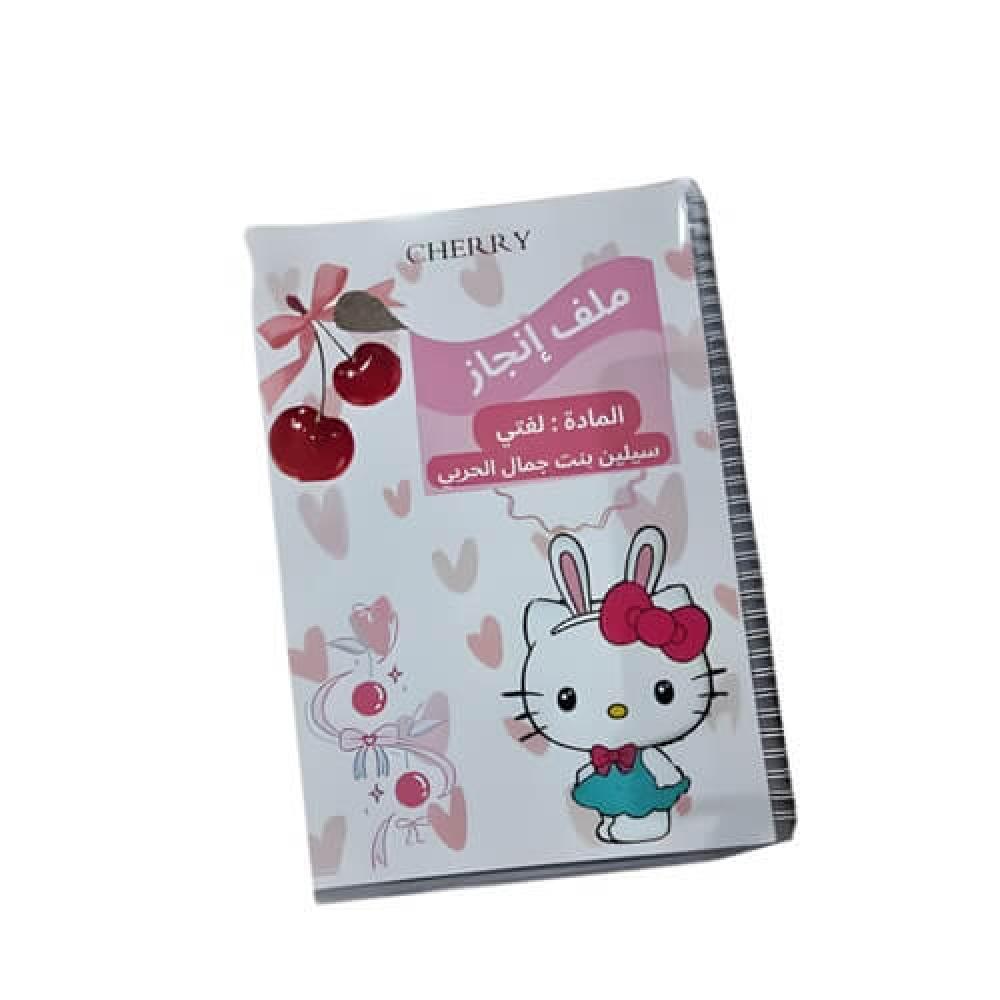 ملف إنجاز هيلو كتي حسب الطلب بتجليد حلزوني وترتيب عملي للأوراق—خيار لطيف لحفظ الشهادات والواجبات اطلبه الآن.