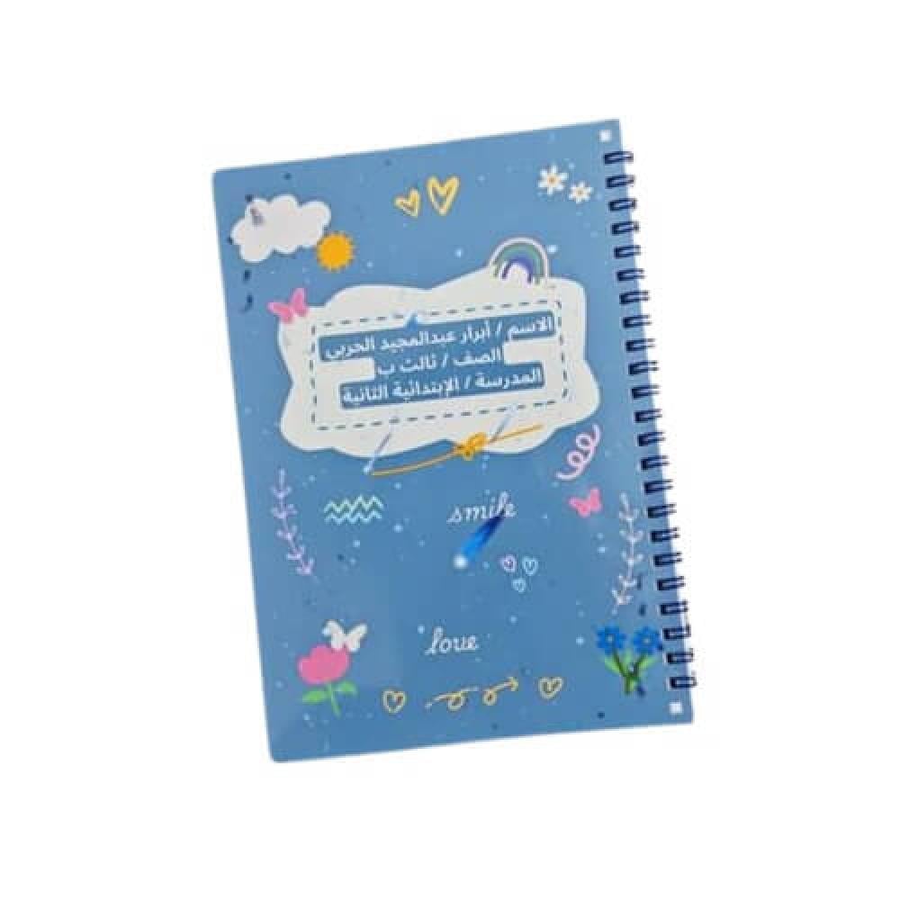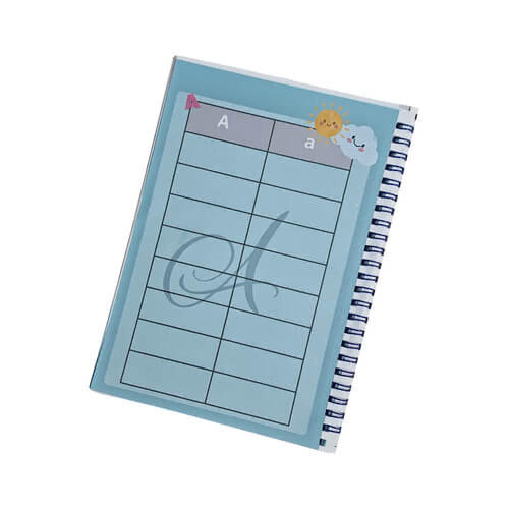 المقاس: A5 | عدد الصفحات: 26 صفحة (حرف لكل صفحة) | مربعات الكلمات: 8 لكل حرف | التجليد: حلزوني | التعديل: الاسم، الصف، المدرسة | الكمية: 1