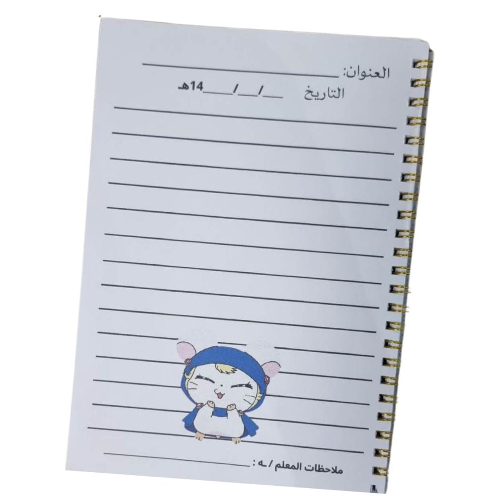 المقاس: A5 | عدد الصفحات: خيارات 40 أو 60 أو 80 أو 100 | التعديل: الاسم والصف والمادة حسب الطلب
