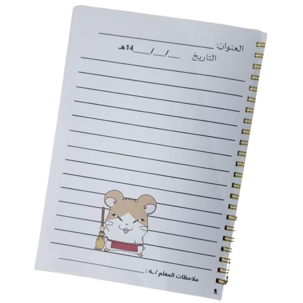 دفتر مادة لغتي بحجم A5 بتصميم همتارو اللطيف يساعد الطفل يكتب ويتدرّب على الكلمات والجمل بطريقة أخف، مع رسوم لتزيين الدفاتر وتسطير واضح يدعم الملاحظات اليومية