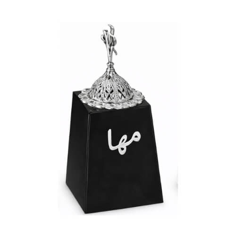 مبخرة هرمية بالاسم تعطي ركن الضيافة فخامة هادية؛ اختاري لون المبخرة ولون الكتابة، واكتبي الاسم أو عبارة قصيرة، واطلبيها للحبة أو للكميات بهدية أنيقة.