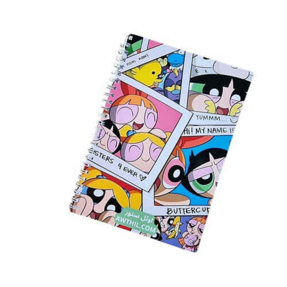 دفتر فتيات القوة A5 للبنات في السعودية، دفتر مدرسي مسطر للواجبات والملاحظات، رسومات لتزيين الدفاتر، تعديل الاسم والصف والمادة، خيارات 40–100 ورقة وطبقة حماية—اطلبيه الآن.