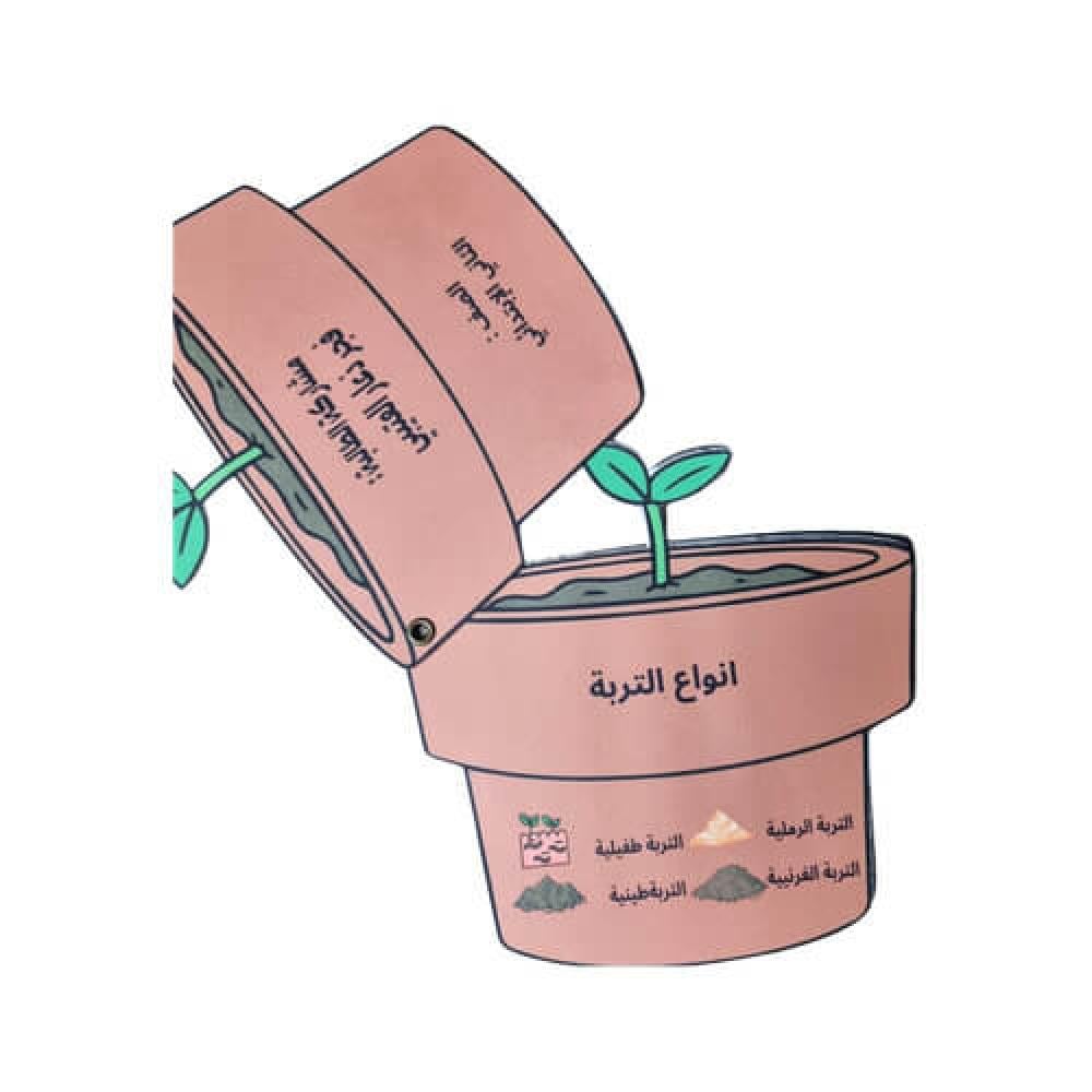 شكل الأصيص مع النبتة يرسّخ فكرة التربة والنمو في عقل الطفل بدون شرح طويل