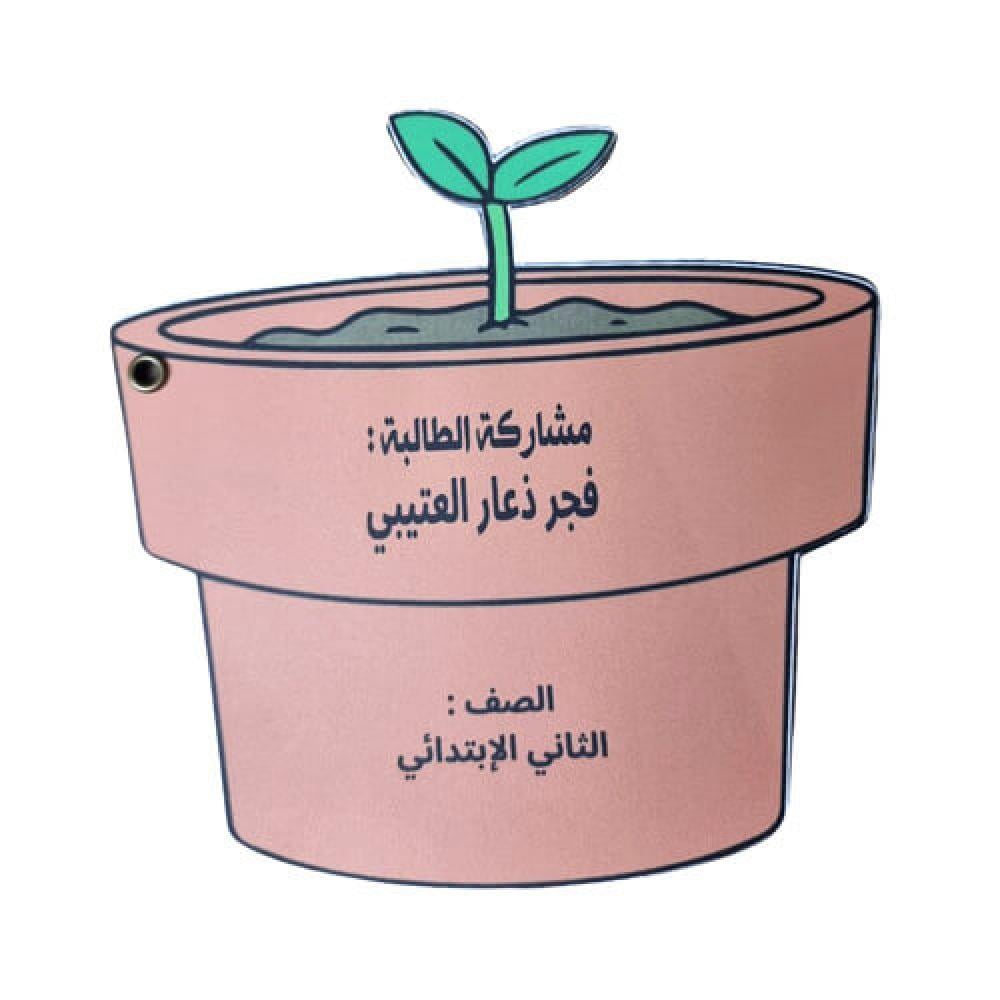 هذا المنتج يعرض مطوية على شكل أصيص زرع مع نبتة صغيرة بالأعلى، وفي الواجهة خانة واضحة لاسم الطالبة والصف، وهذا يخليها ممتازة للعرض في الفصل وتعليقها في ركن العلوم أو ركن أسبوع البيئة داخل متجر حرفة تذكارية.