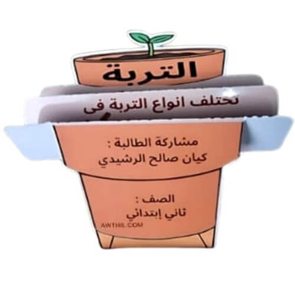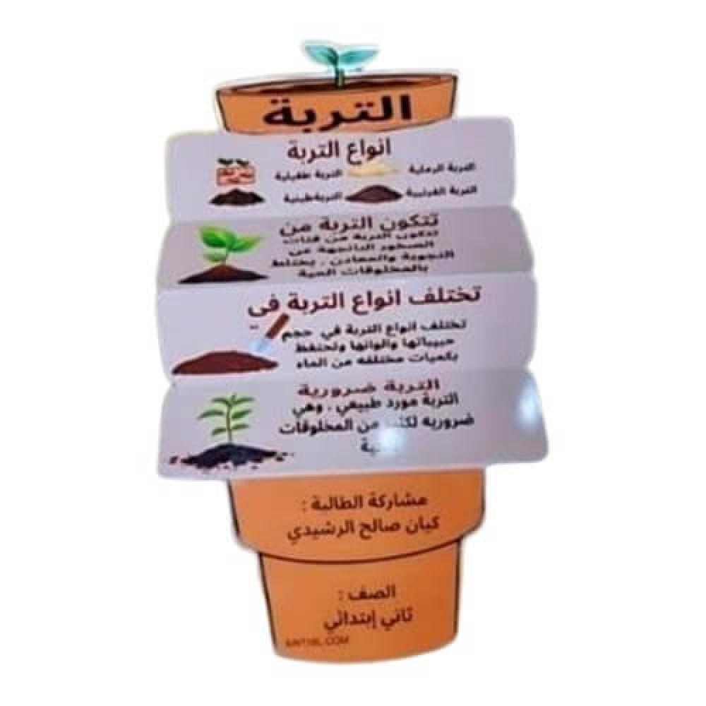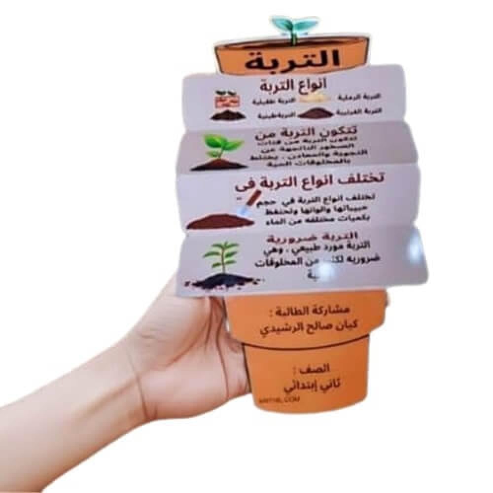 وإذا ودّك تعدّلين على مطوية أنواع التربة المعروضة (العبارات، الألوان، إضافة شعار المدرسة أو صورة الطالب)، راسلينا ونرتّب لك التعديل المناسب.